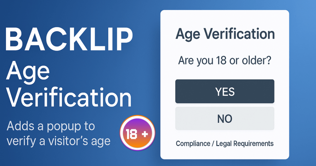 Ensure age compliance with customizable pop-ups for age verification, featuring 18+ age checks.