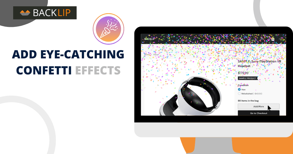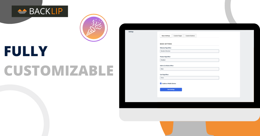 BACKLIP Confetti Effects lets you add fun, animated visuals like confetti, stars, fireworks, snow, and more to your Ecwid store. It helps you celebrate special moments - like purchases, promotions, or holidays - by showing animations at key points in the customer journey. You can trigger effects on specific pages such as the welcome page, product page, cart, or checkout success. For more control, you can also set effects to appear on up to two custom page URLs or when specific buttons are clicked using custom CSS selectors. All effects come with pre-set colors and styles tailored for a smooth and festive experience. The app is mobile-friendly, easy to set up, and runs efficiently without slowing down your store. With its clear settings panel and automatic save system, you can configure everything quickly - no technical skills required. BACKLIP Confetti Effects brings joy to your storefront and helps leave a lasting impression on your customers.