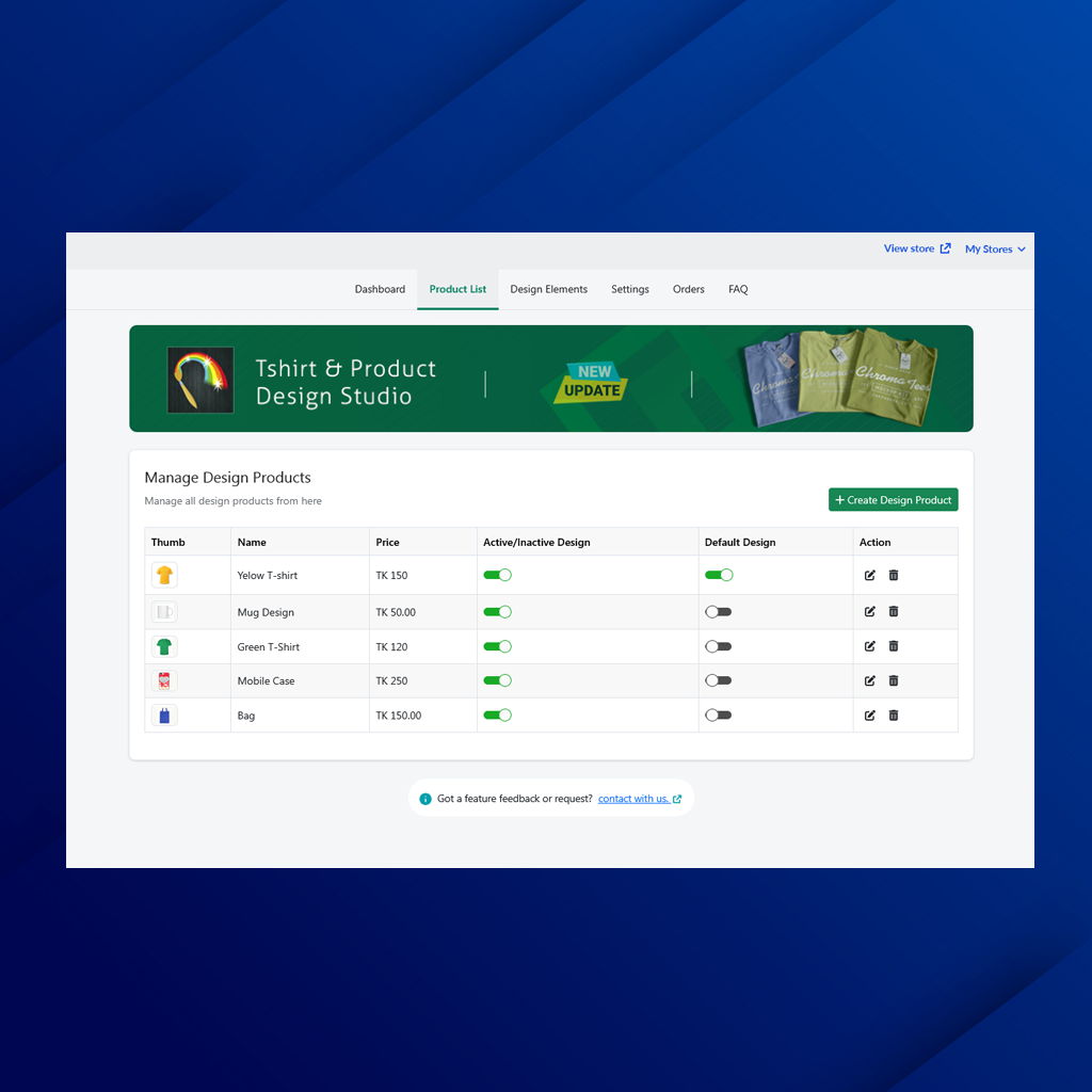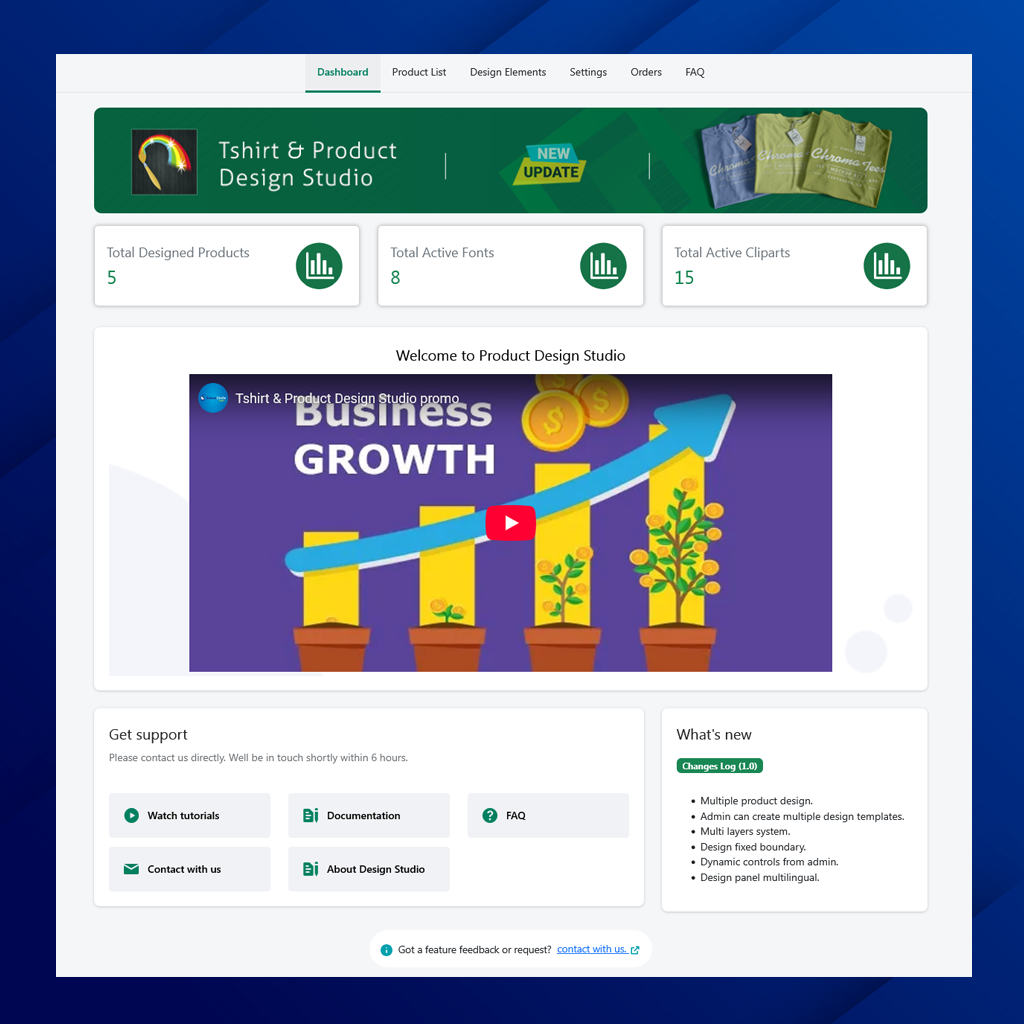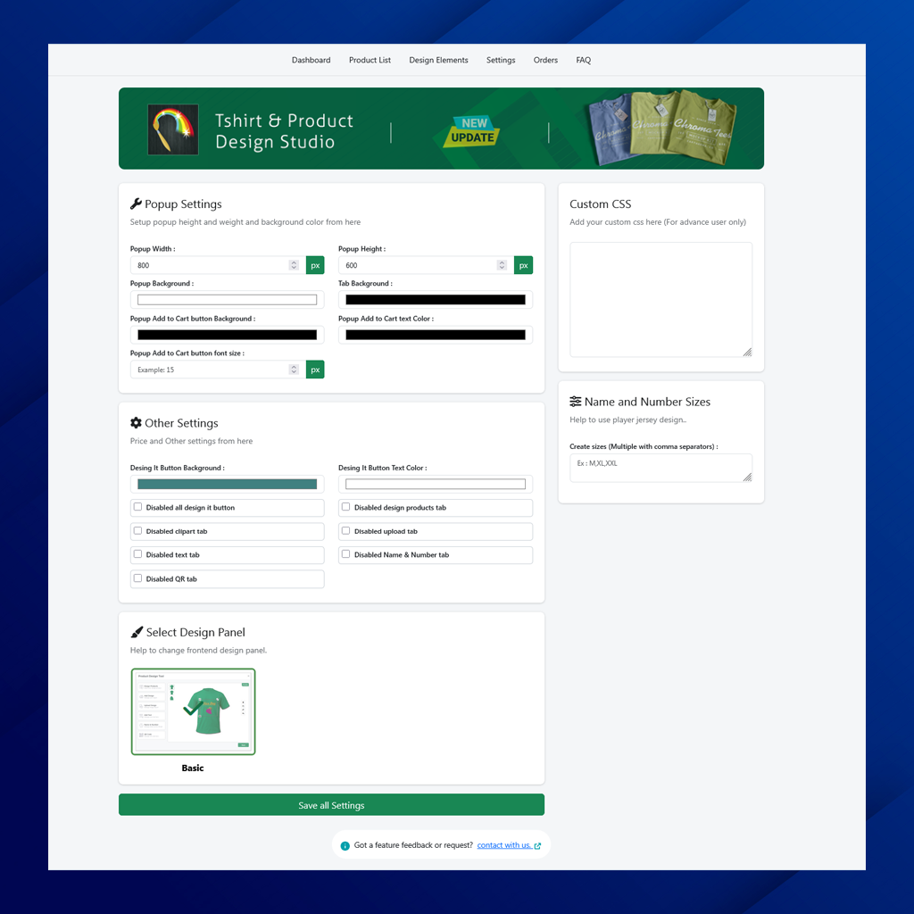 Give your customers the freedom to design any product from t-shirts to mugs — by adding logos, text, images, and clip-arts directly in a live editor. Our app makes it easy for merchants to set up product-specific design templates from the backend, ensuring a smooth and intuitive customization experience for shoppers. You can manage fonts, clipart libraries, and color options, and even set additional custom pricing for personalized elements. Once a customer submits a design, you’ll instantly receive detailed design files — ready for Print on Demand production. With multi-language support and customizable settings like popup buttons, the app adapts to your store’s needs. Save time, increase average order value, and give your customers the power to create products they’ll love.