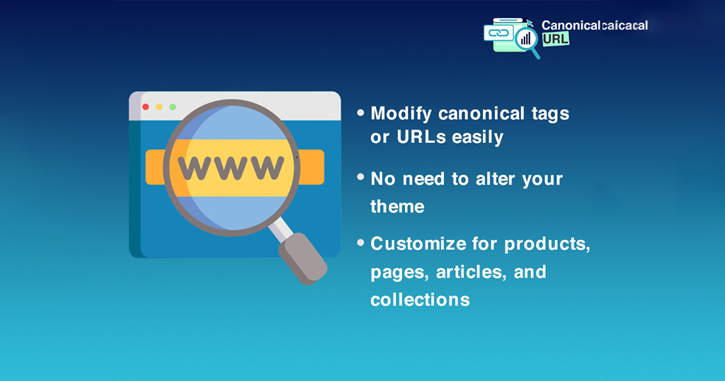 There is no easy way to edit canonical tags or URLs, and that's where this app comes into play. The Canonical Tag/URL Manager allows you to edit canonical tags for any of your Services, Blog, products, pages, articles, and categories. This is beneficial to your site if you want to point search engines to a different version of a page, for example, if you have multiple versions of the same service ot product but you want one to get all the juice, then modify its canonical url to let search engines know.