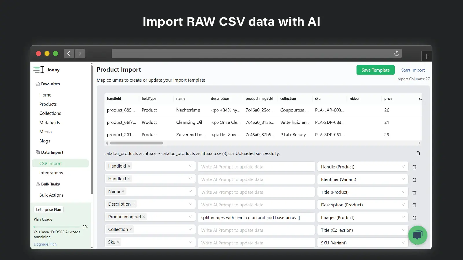 • Import Raw Vendor CSV data any platform with AI. Structure Data.