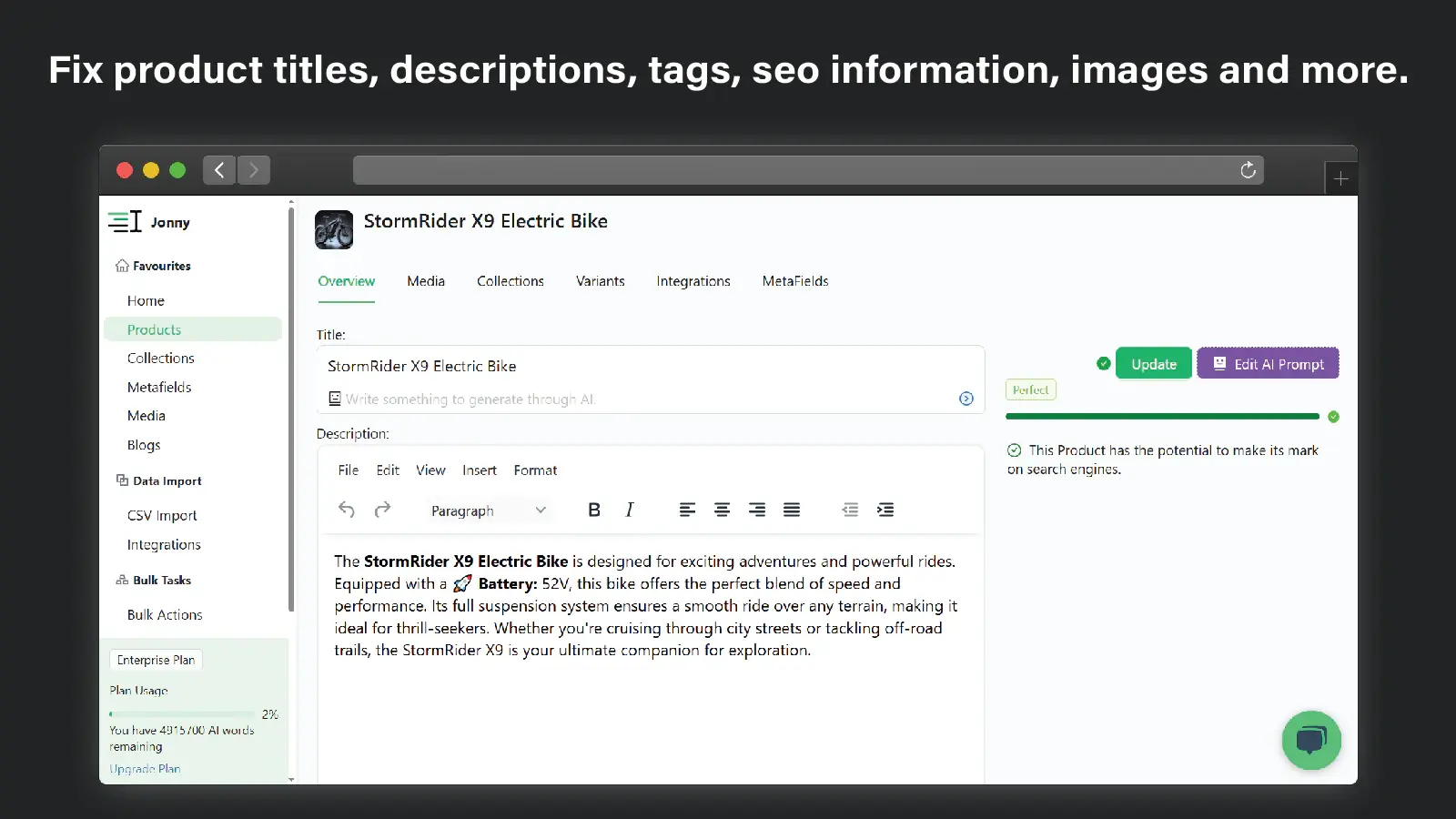• Visualize product SEO with Google-compliant scores. Update effortlessly.