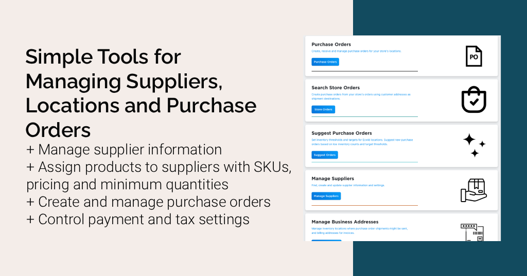 Manage your suppliers and purchase orders simply, based on your store’s data