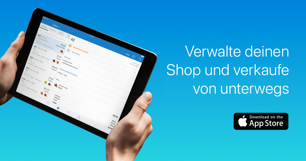 Verwalte deinen Shop, verkaufe Produkte von unterwegs und akzeptiere Zahlungen mit deinem iPhone oder iPad