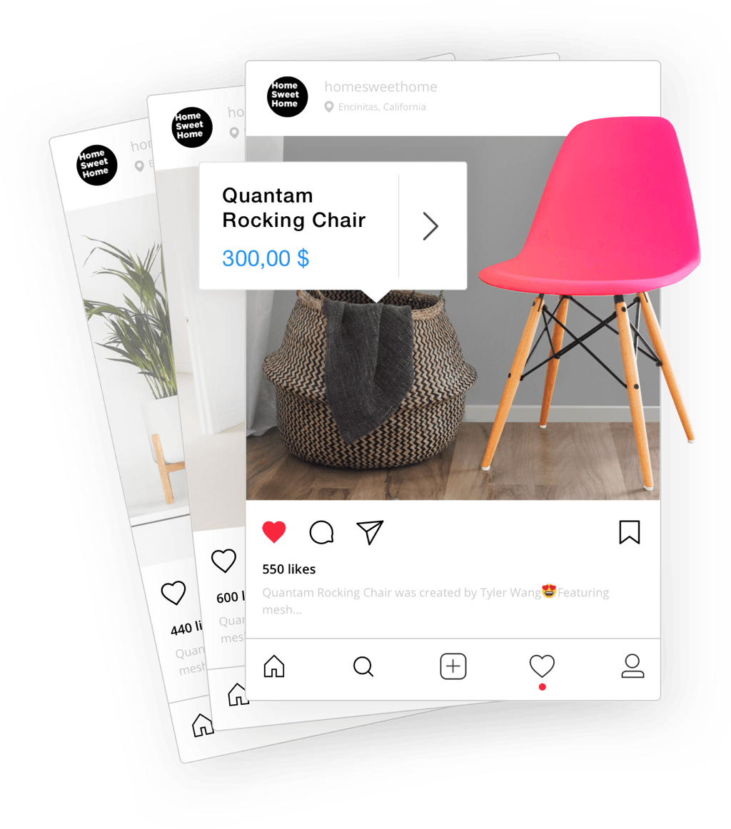 Gracias a Ecwid, los clientes podrán descubrir fácilmente tus productos a través de etiquetas en los anuncios de Instagram.