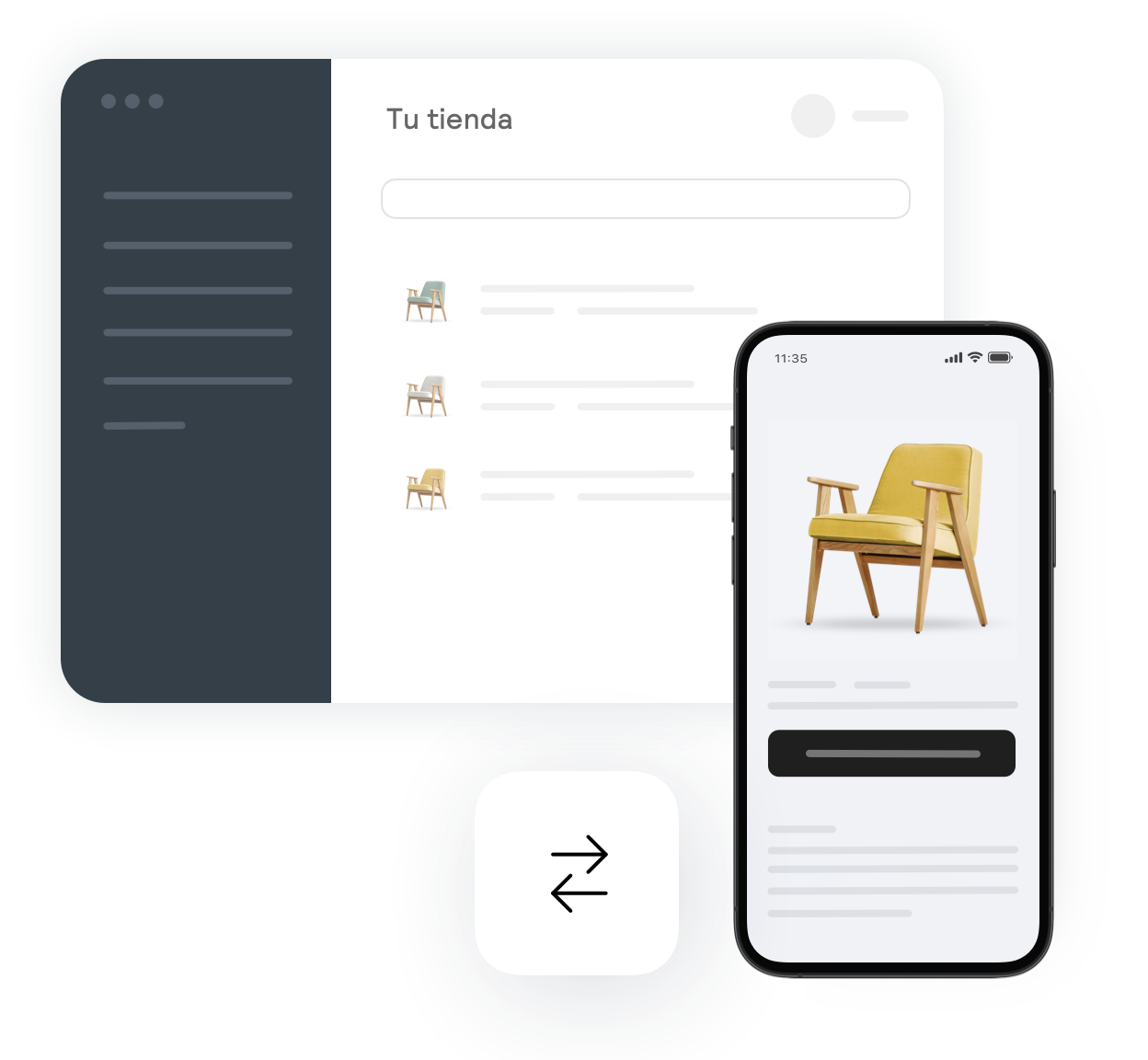 ShopApp® y tu tienda Ecwid están siempre conectados y sincronizados. Las imágenes, los precios, la disponibilidad y los cambios en la tienda se sincronizan automáticamente en la nube.