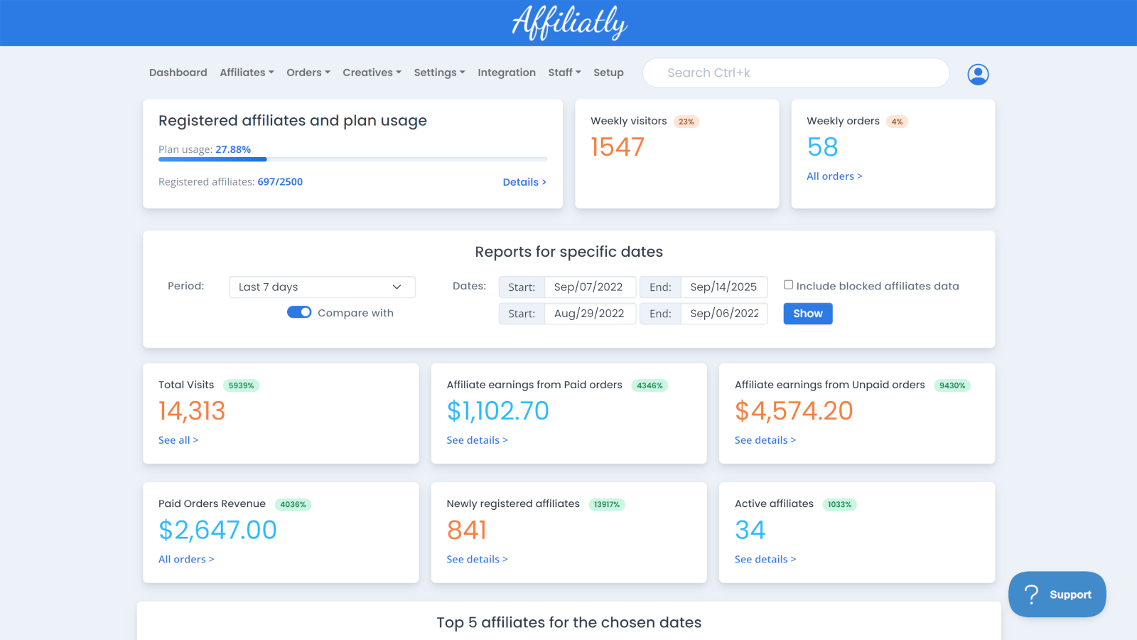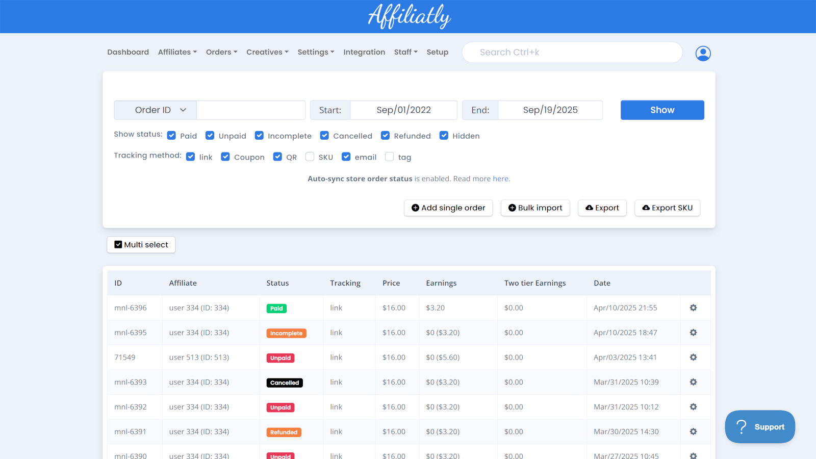 Affiliatly tracks both mobile and desktop visitors and offers a wide range of functions and methods to run your affiliate marketing program.