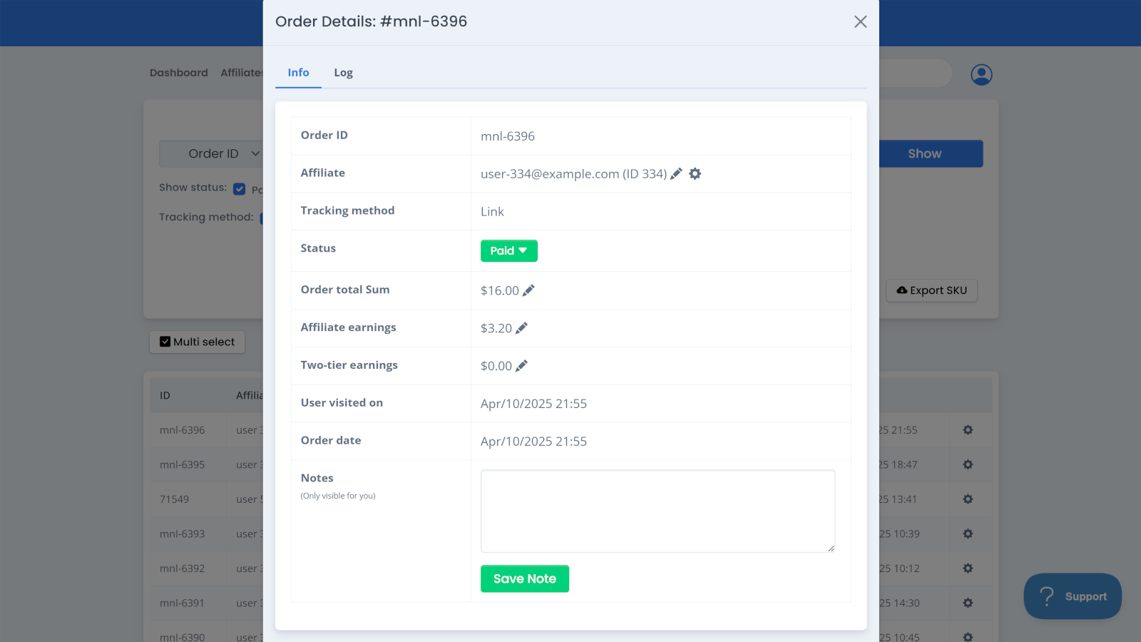 Track your affiliates' referrals by link, coupon code, QR code, client's email, product SKU, or a combination of those.